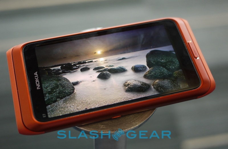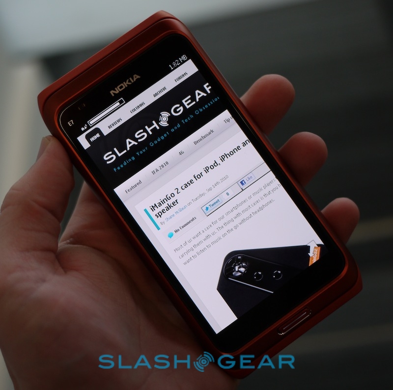 We can't really argue with that. The E7's 4-inch 640 x 360 AMOLED – using Nokia's new ClearBlack Display tech – is clear, beautifully color saturated and looks great showing off photos and video (including those taken by the phone's own 8-megapixel autofocus camera). Symbian^3's media browser is as close to CoverFlow as you imagine Apple's lawyers would allow, and the handset's processor proved easily capable of keeping up with fast-flicking navigation.