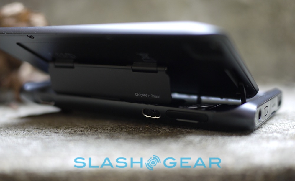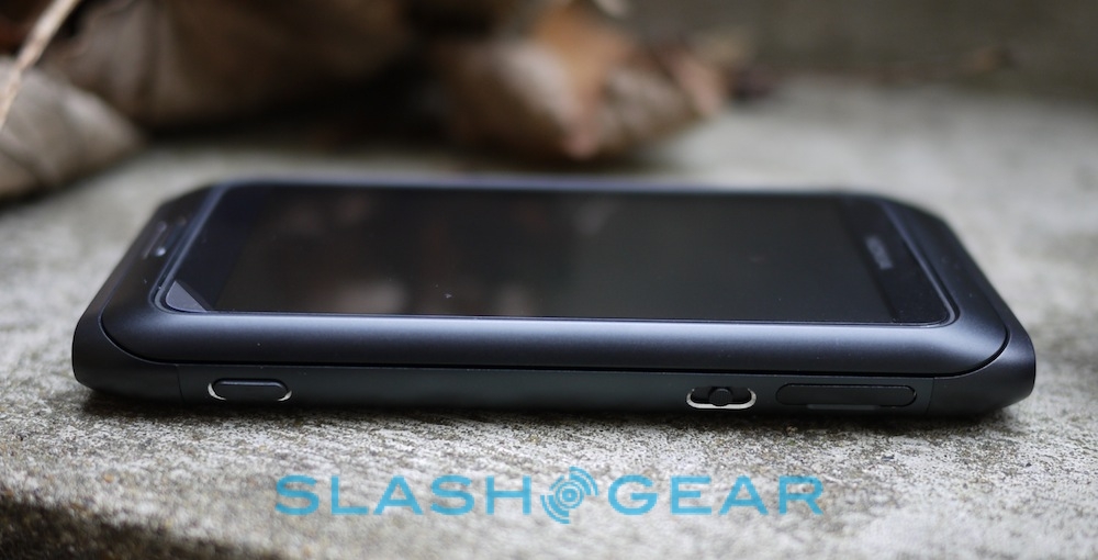 Ports include microUSB, HDMI and a 3.5mm headphone jack on the top edge, with the SIM card loading in a carrier on the right edge. Physical controls continue Nokia's well-machined bevelled style; the lock switch is the only mild frustration, audibly rattling a little if you shake the E7. Still, it's the only negative (and a minor one at that) on a piece of high-quality design.