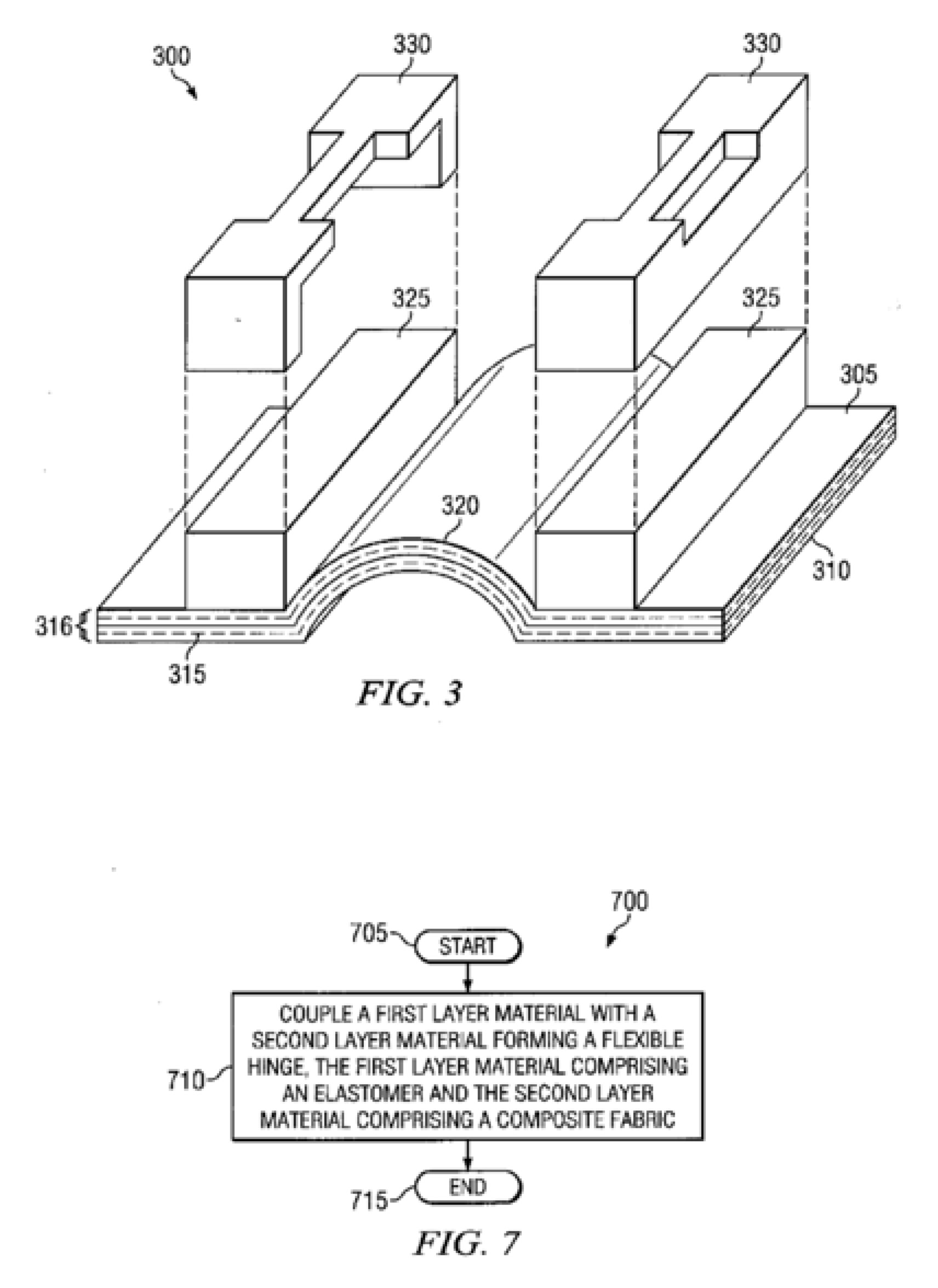 The system Nokia describes uses multi-layered strips consisting of elastomers and composite fabrics, with various combinations of materials to choose between. The first layer could be a thermoplastic or thermoset material, or natural or synthetic rubber, Nokia suggests, while the second layer could be Kevlar or Cordura fabric.