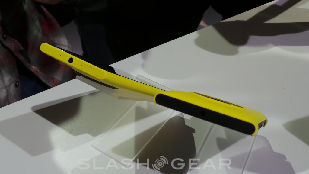 From the front, it's the same Nokia we're used to. Windows Phone 8's squared-off UI and bold colors looks great on the 4.5-inch 1280 x 768 AMOLED display, and you'd be forgiven for thinking you were looking at a a Lumia 920 instead. Above the display there's a front-facing camera with a wide-angle lens, for fitting in more people during each shot.