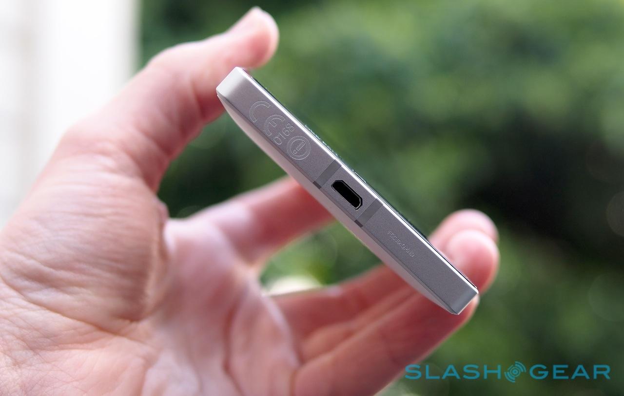 On the downside, while the SIM tray at the top does away with an annoying pin for release, it does so in a way that looks pretty ugly to our eyes. Verizon's badging is also excessive: its logo both front and back, as well as a 4G LTE logo, joining two Nokia badges and the PureView legend. It's a shame when Nokia has clearly put so much thought into how the Icon appears even when not in use, such as even minor details like engraving rather than printing on the regulatory text across the bottom edge.