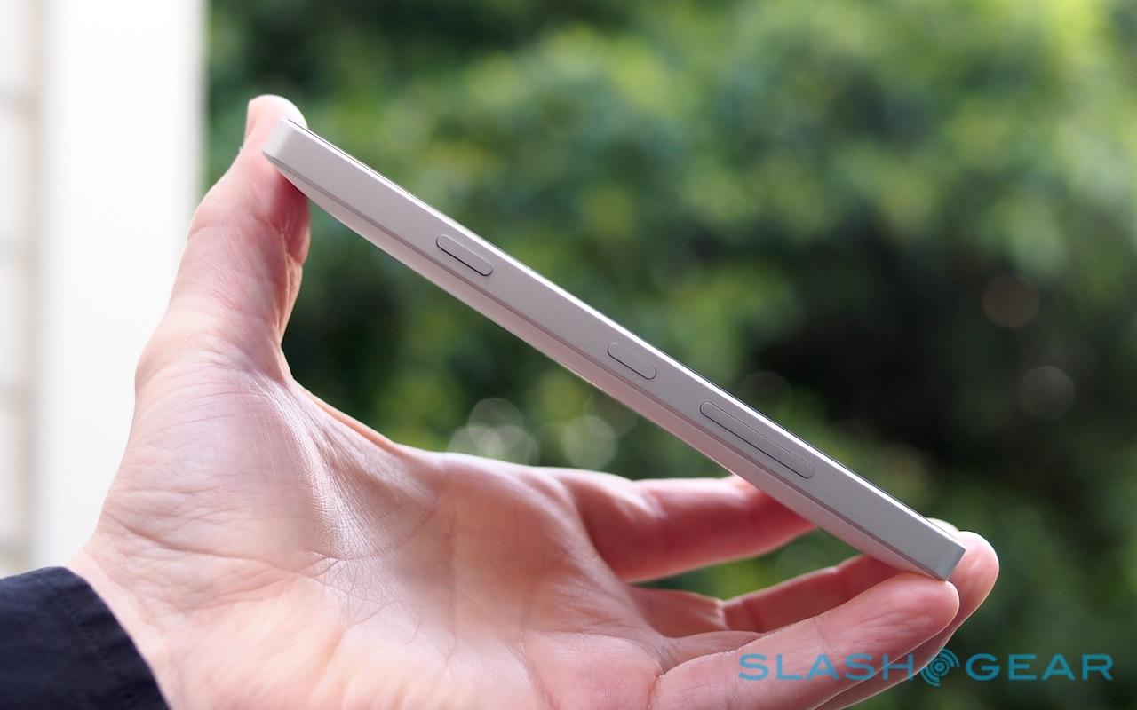 Sure, side by side with an iPhone 5s it looks pretty huge, and the decision to bow out the back so that there would be no bulge around the camera does leave it relatively thick, but there are plenty of little details we like. The physical buttons are close to ideal, easy to find with the fingertips, and only let down by some squishiness in the second-stage of the camera key.