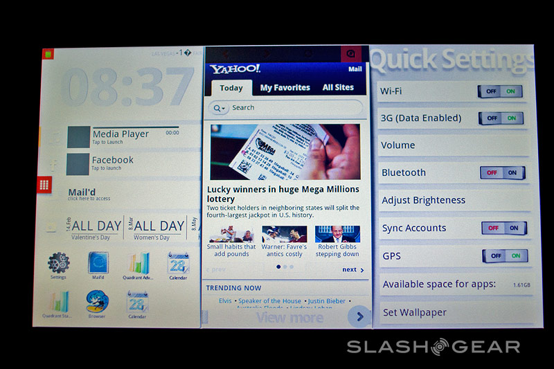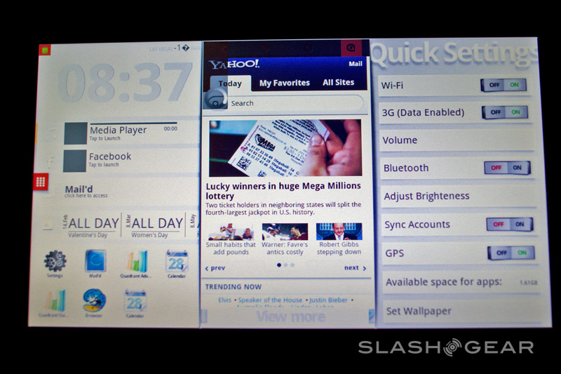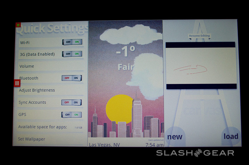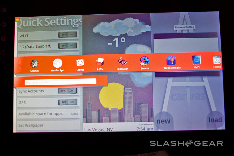 While Adam's hardware pushed the envelope 12 months ago, by now there are plenty of other Tegra 2 slates hovering around the market. What keeps the tablet looking special is Notion Ink's custom software. Eden, the multitasking UI, splits the screen into three panes, and intelligently uses the dual-core NVIDIA processor to balance power and battery life. For instance, the CPU shows up as a single core in the Android "About" page; Eden won't activate the second core if there's still capacity in the first core.