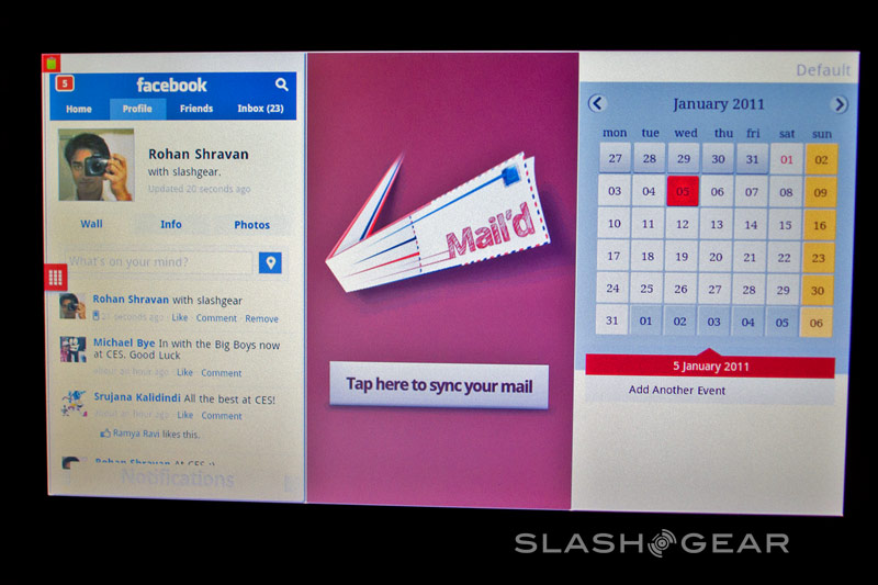 The way individual apps are handled does its part to minimize Tegra 2 exertion too. In the mail client, for instance, when you're only reading emails it doesn't load the send-mail library. That reduces load times and shrinks the amount of memory and power required. Other apps work in a similar way, only loading the libraries that are necessary for the functions you're actively using. Background apps are frozen to free up their resources.
