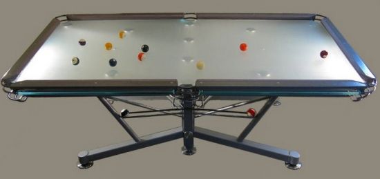 What you also get is a non-traditional appearance, with various glass color and frosting options available. The ball-return mechanism has been integrated into the table's stand, and it uses BCA-specification pockets and K-66 bumpers. Craig Nottage, who founded the company, came up with the design as part of his final year project for an Industrial Design course in Australia.