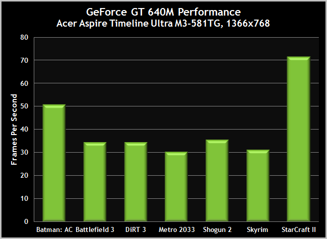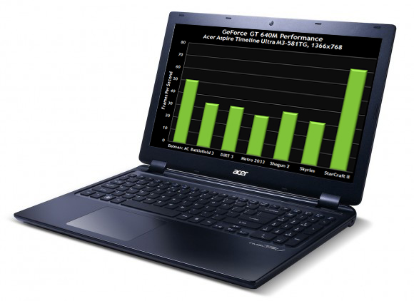 Meanwhile performance compared to integrated graphics is up to a tenfold improvement, NVIDIA claims, despite no huge impact on battery life. The Acer ultrabook, for instance, will run for up to 8hrs despite toasting 500M-series based notebooks like Alienware's M15x.