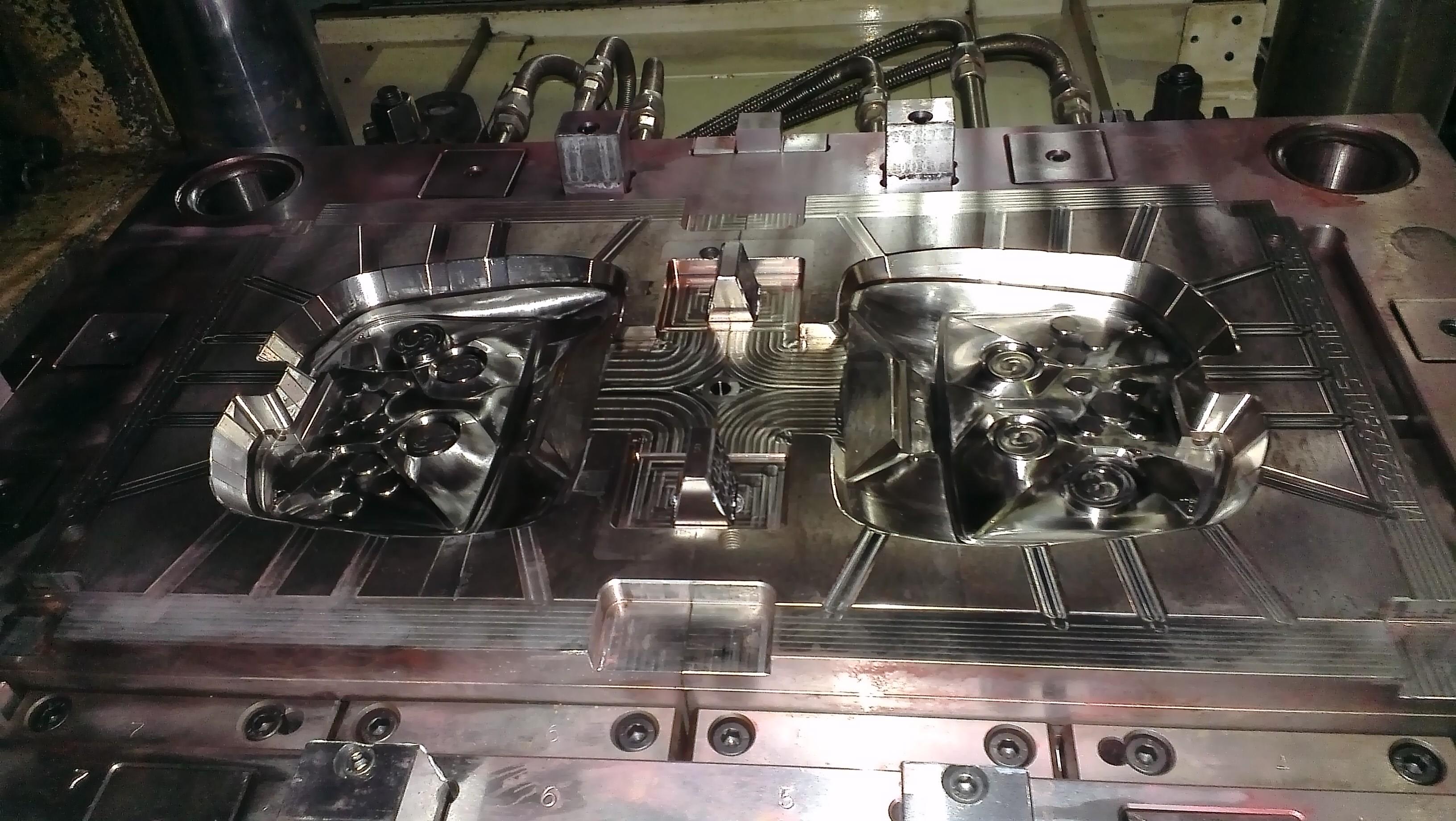 According to NVIDIA, the casing for Project SHIELD is made starting with an injection of polycarbonate material into the the RHCM (Rapid Heat Cycle Molding) tool you see above. This is done at a terrifying 10,800 PSI and 300 degrees Celsius, says NVIDIA, while the mixture is made up of 90% Sabic 500ECR-739 PC and 10% glass. That's a mixture that's rough and tough yet lightweight for easy carrying.