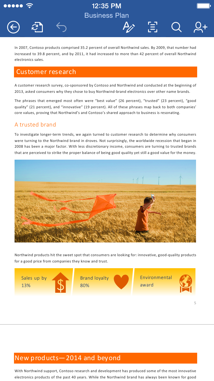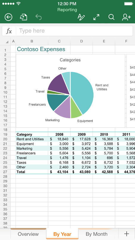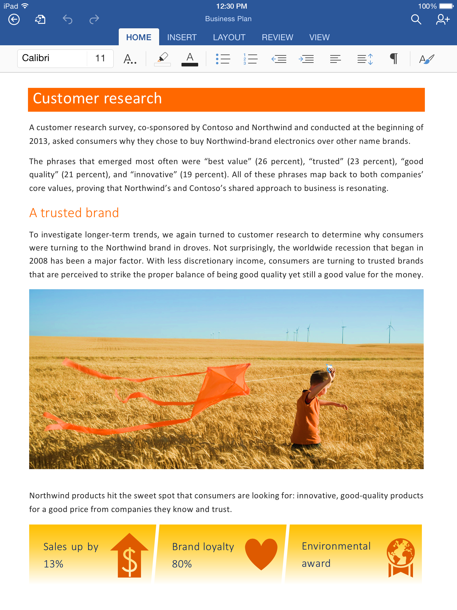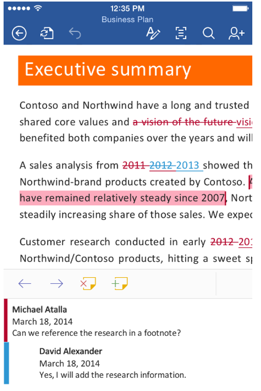 Of course, Microsoft also has its own platform for tablets in the shape of Windows, but those users aren't being left out. Touch-optimized Office apps will arrive alongside Windows 10, the company says, sharing a single preview image of the app-in-progress: