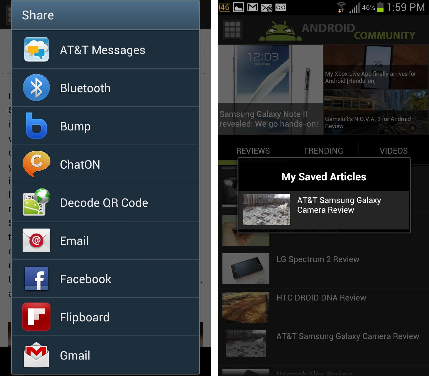 Each article also has a menu which you can access with your Android menu button that includes sharing abilities with whatever apps you've got on your device that can share. You can also access the ability to save an article for later viewing, change the size of the text in each article, and make comments, too. Comments are also available under the grid icon in the upper left-hand corner, this also showing a back button and a reload button for updates if you're antsy.