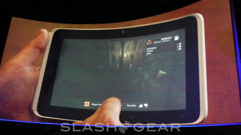 Another part of the demo that stood out included Steve Perlman demonstrating the OnLive service also running on the HTC EVO 4G hooked out to a TV via HDMI out. He then used the existing OnLive controller to play the same game that was being played on the Flyer through the EVO 4G on the LCD TV.