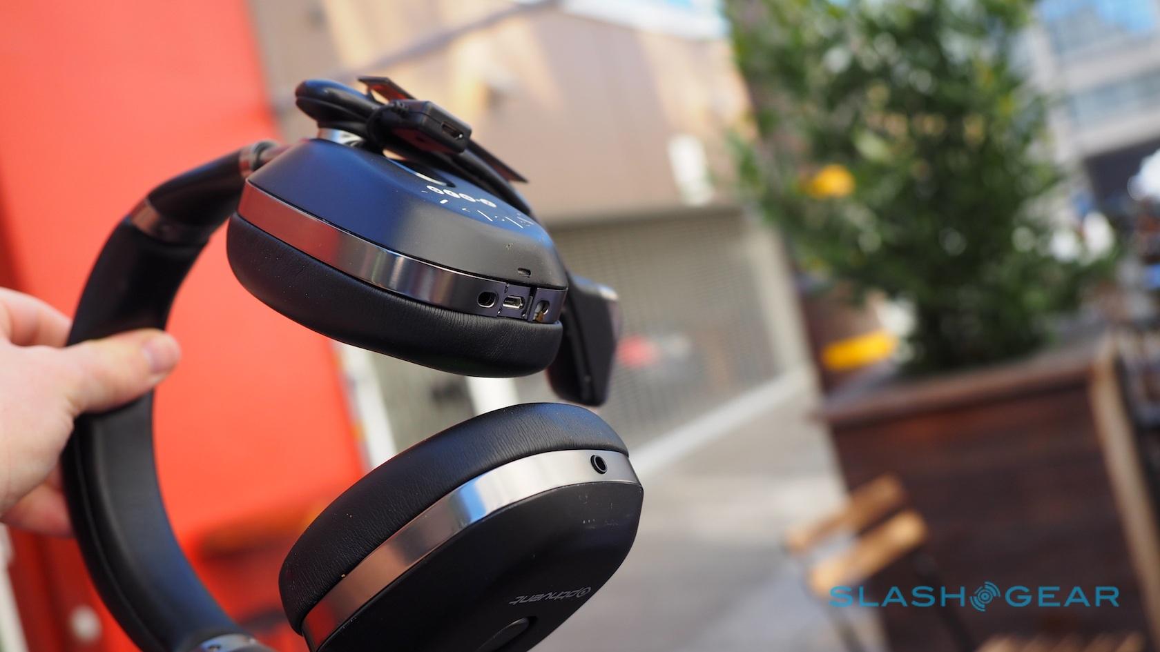 So, they're beefy closed cans with 50mm drivers, 20Hz-20KHz frequency response, and THD < 5-percent at 1KHz (1mW) fidelity. The ear cushions are comfy memory foam and, while the prototype I tried used a fair amount of plastic, the eventual product will switch that out for metal and a real leather band.