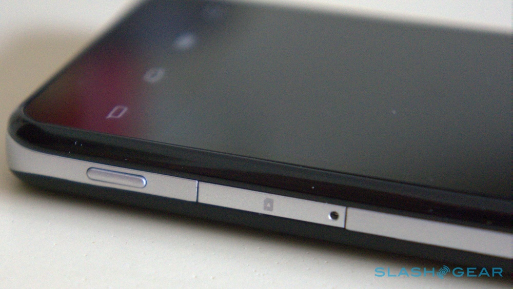 A silver trim goes around the phone which also houses the numerous buttons and ports, including power and the 3.5mm headphone jack at the top, plus volume rocker, camera shutter, and microSIM card slot on the right. A microHDMI output can be found on the left hand side, while microUSB rests on the bottom next to the speaker grills. Odd that Intel didn't spring for a combined port with MHL output, but perhaps the silicon doesn't allow for that yet. The camera shutter didn't present us with any problems, but the power button did give us a bit of trouble at first. It doesn't protrude from the device enough, resulting in not a whole lot of feedback when pressed. It never failed to register our presses, however.
