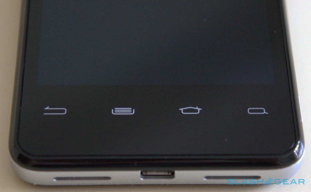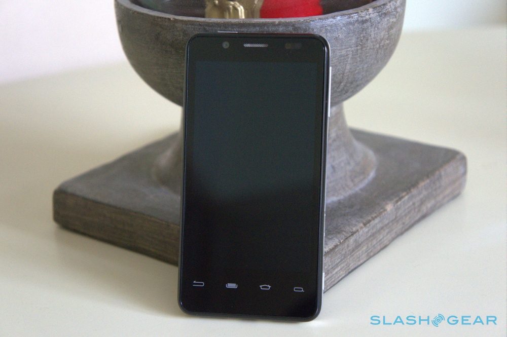 We'll give credit where credit is due: whereas phones at this price point and below often use glossy plastic covers, the San Diego instead opts for a rubberized texture that repels grease and fingerprints. The 4-inch handset is comfortable enough in the hand, even if it is a smidgen too big thanks to the wasted space underneath the four capacitive keys at the bottom of the screen. There's also some noticeable flex to the device. Keep a steady eye on the phone as you shift and twist it in your hands, and you'll hear some creaking emanating from the bottom half, with some noticeable bending to boot. Does it feel like it's going to break? No, and it's solid enough, but it was somewhat alarming at first.