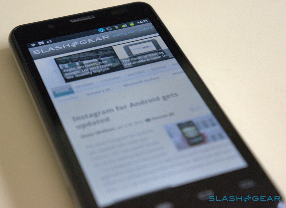 The browser, meanwhile, seemed to always just fall shy of great performance. While pages are quick to load over WiFi and 3G, scrolling is never completely smooth, and it's the same story with pinch-to-zoom. It's about 90% of the way there, but the occasional hiccup and stutter stops everything from being completely perfect. The lack of Ice Cream Sandwich means you won't be able to turn to alternatives like Chrome or Firefox either, and we can't help but wonder if the latest version of Android is all that's holding the phone back from being buttery smooth all around.