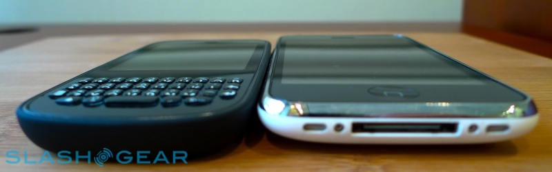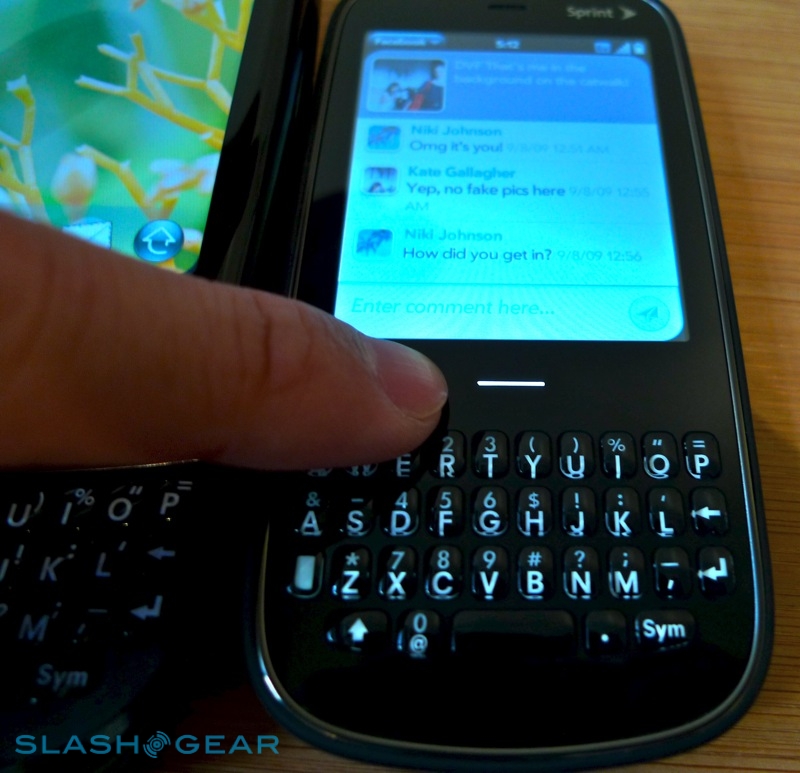 A side-product of the non-sliding design is that the QWERTY keyboard has been reworked, and while it's narrower – since the Pixi is narrower than the Pre – the buttons are also more raised and show marked signs of tactile improvement over the first webOS phone. Palm have also dropped the hardware Home button, replacing it with a totally touch-sensitive strip running in-between the display and the keyboard. Like the Pre, the Pixi's capacitive panel stretches down over the lower edge of the LCD and into this black center strip, and is used for triggering gestures, bringing up the webOS launcher, and other things.