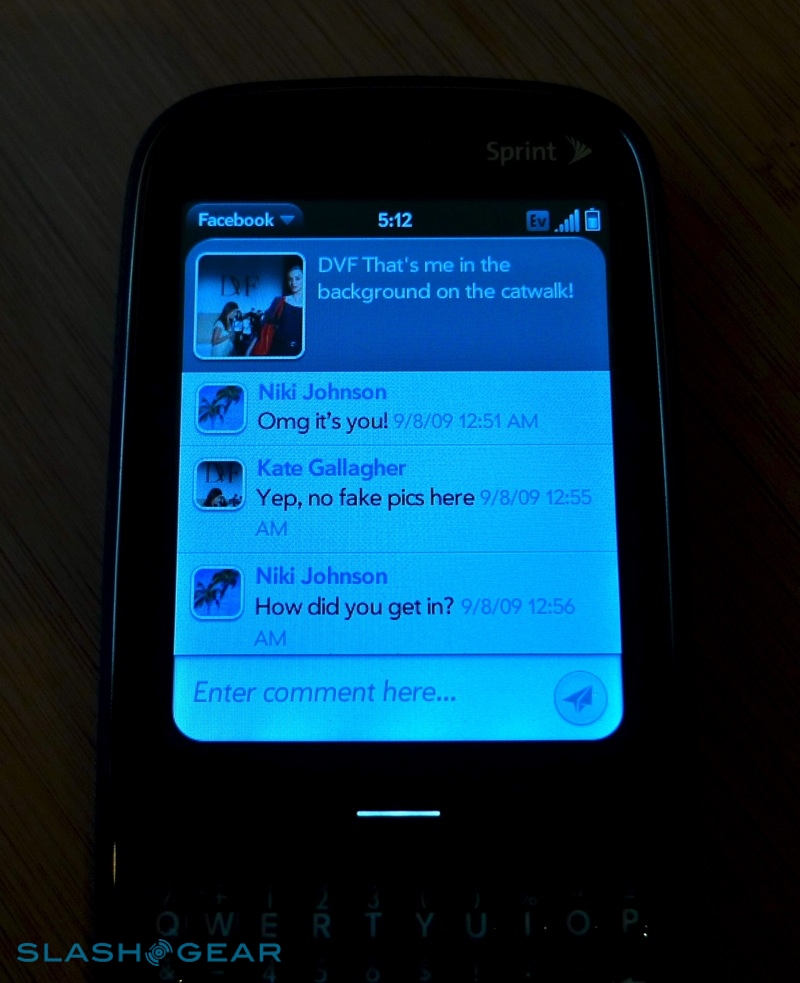 Those back covers – together with the Pixi's standard panel – are compatible with the Palm Touchstone inductive charger system. The smartphone also keeps the 3.5mm headphone jack and traditional Palm ringer-switch of the Pre, together with GPS support. However the Pixi will bring along some new webOS functionality when it launches, including boosting Synergy support to include LinkedIn and Yahoo!, and a new native Facebook application.