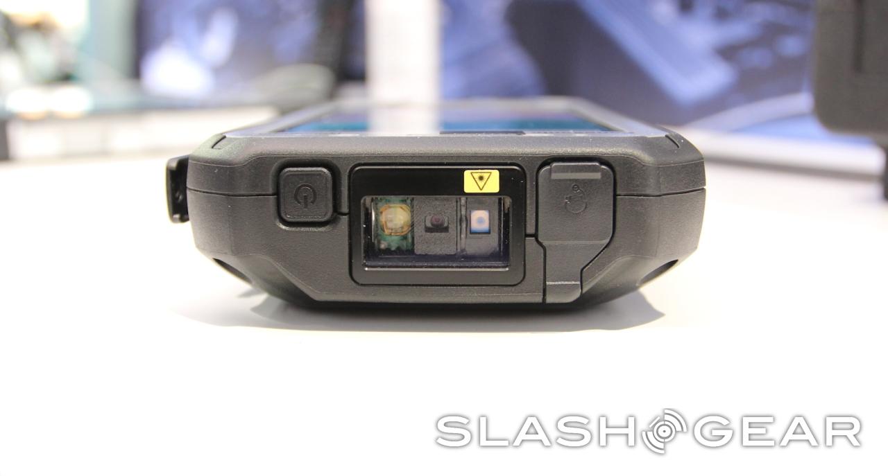 Also included on both versions of the device are a forward-facing camera, backward-facing camera, and a standard headphone jack op top – the whole lot is sealed against water and dust, as well, so you've got hatches galore. Up top is also a projector and laser array – which we've not gotten the opportunity to test quite yet.