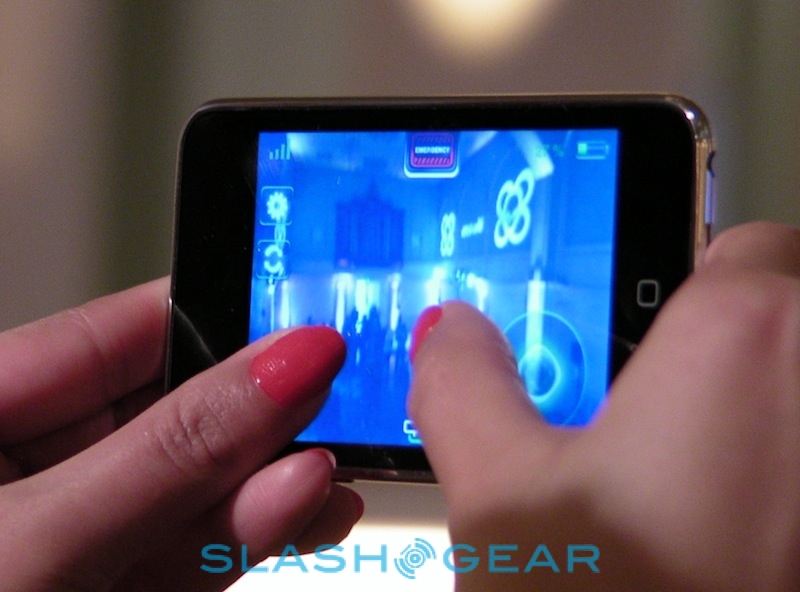 We were having enough fun in single user mode, but of course Parrot are positioning the AR.Drone as a flying game system. Thanks to various apps which will be available through the Apple App Store, together with tag detection software running on the Drone itself, two people can dogfight with their AR.Drones, watching virtual explosions and tracer trails on the iPhone display. It takes some practice – and the 10fps update speed doesn't help matters – but it does at least promise some longevity appeal. Parrot reckon over 450 developers have signed up for SDK access, so hopefully we'll see some results from that hit the App Store shortly after the AR.Drone's release.