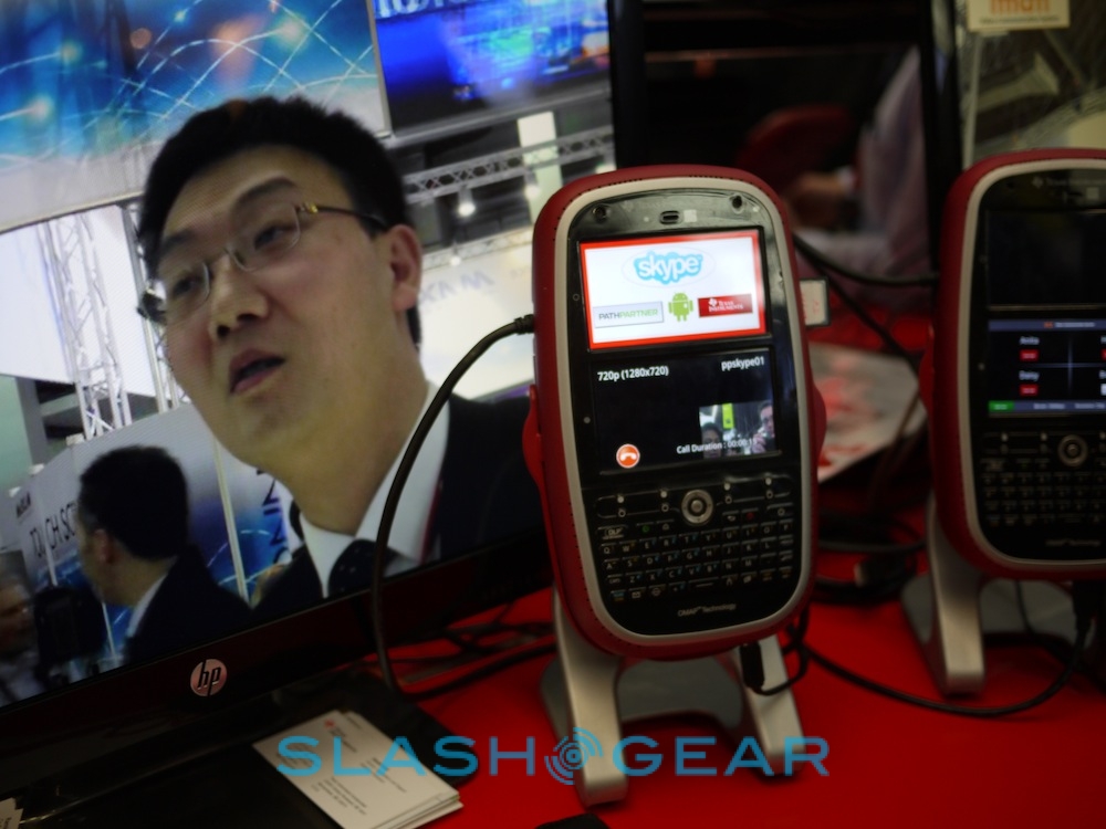 The Pathpartner system uses OMAP4's crunching abilities to compress 720p HD into something a 3G mobile network could happily handle, and the TI Blaze developer unit running the app was hooked up to an HDTV to prove the quality was top-notch. Pathpartner is in talks with Skype now, regarding getting officially certified, and hopefully that means we should see it on Android devices sooner rather than later.