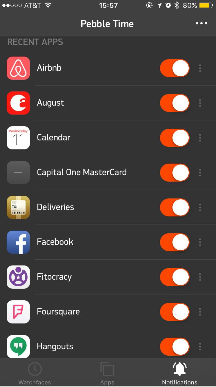 iOS users are in for a treat with version 3.10 of the app. The jump from version 3.6 in just a month is very much warranted in this case. For one, the app had a facelift, bringing the Watchfaces, Apps, and Notifications tabs to the bottom. That Notifications section has also gotten a huge change. Pebble is introducing Notification Filtering, which allows you to choose which apps on your iPhone can send notifications to your Pebble. Apps that are turned "Off" are actually muted, meaning their notifications will only appear on the iPhone. You can even set when those apps will be muted.