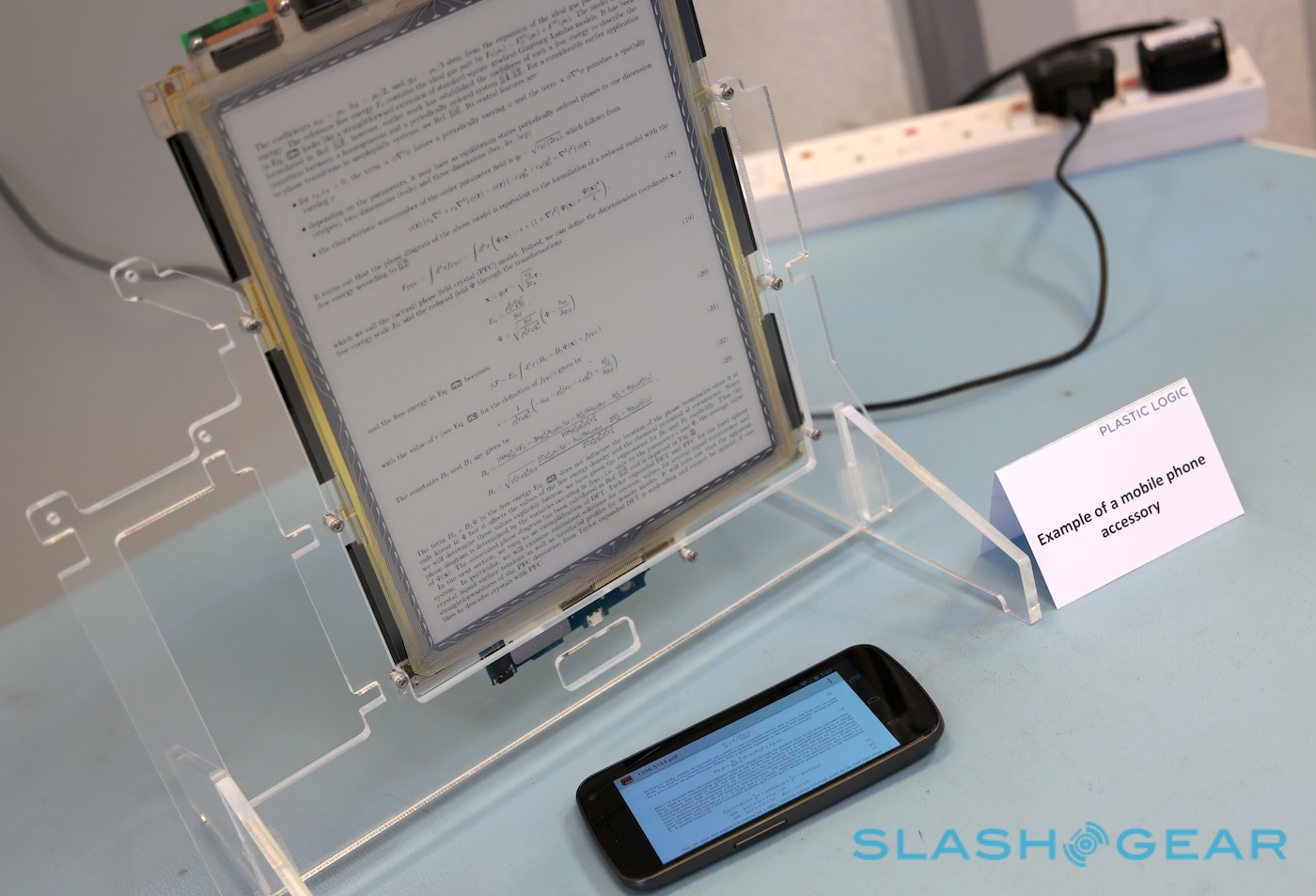 The must-have smartphone accessory of tomorrow might just be an unbreakable touchscreen epaper tablet, saving your eyes from squinting at a mobile display. Plastic Logic revealed its work-in-progress slate to us today, as SlashGear browsed the goodies in the company's UK R&D center, confirming that talks with several manufacturers and carriers are ongoing to bring the companion device to market. Potentially bundled with your next smartphone could be a 10.7-inch super-light touchscreen pane for easier viewing of webpages, documents and more.