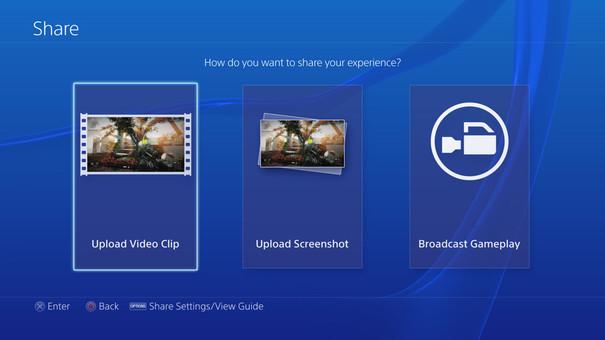 The Share Menu allows players to upload video clips, screenshots, or broadcast their live game play. The Video Edit screen also gives us a glimpse of how you'll be able to edit your game videos on the console before you share them.