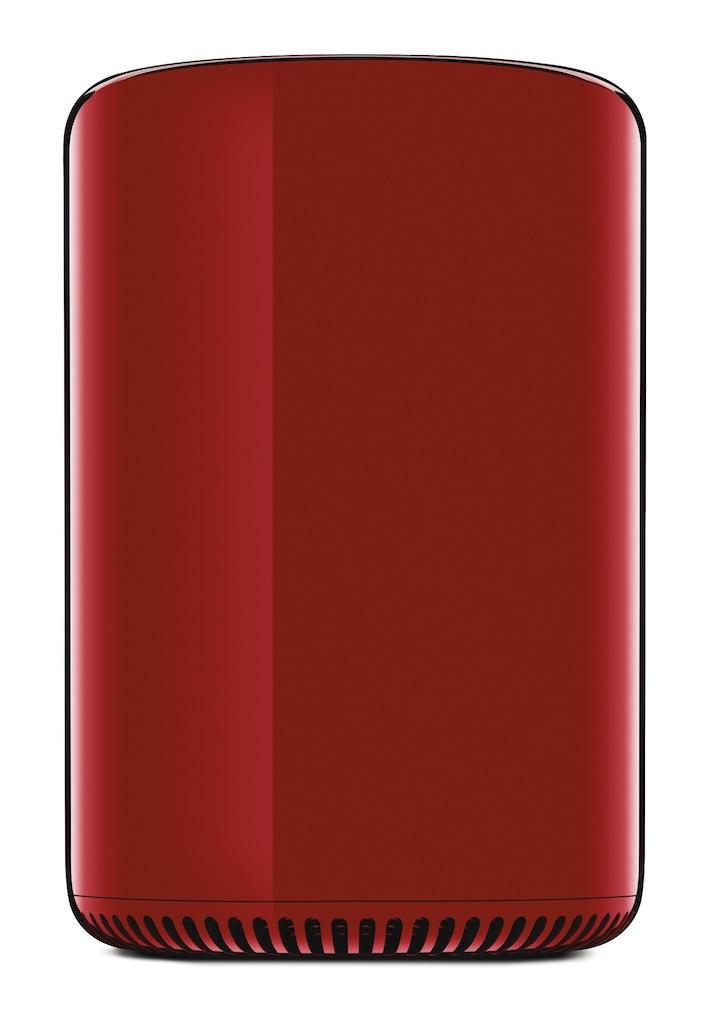Regular buyers will get a black, gloss-finished anodized casing, just 25.1cm tall and using an innovative new cooling system that uses a central heatsink core and a single fan to keep all of the components running smoothly. For the Product (RED) version, Ive and Newson not only gave the round external shell a new color, but the whole of the underlying frame.