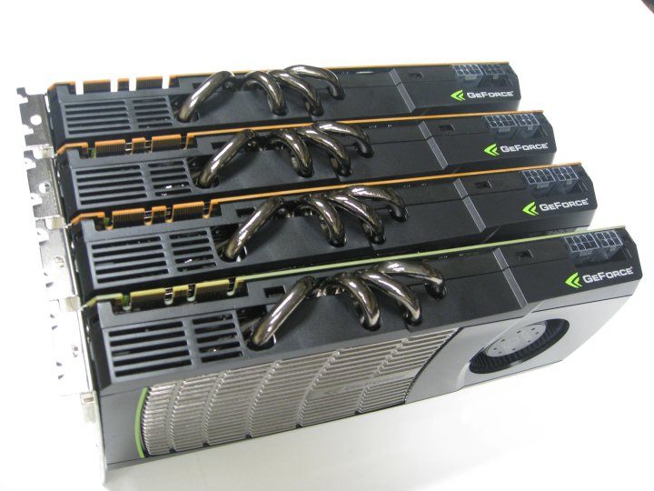 One NVIDIA GTX 480 graphics card is potent; two are impressive and three, in SLI setup, is probably overkill for all but the most avid (and deep pocketed) of gamers. So, what do you call four GTX 480 boards in a single machine? CyberPower Inc. have apparently been experimenting with the EVGA GTX 480, showing a new quad-card rig on their Facebook page.
