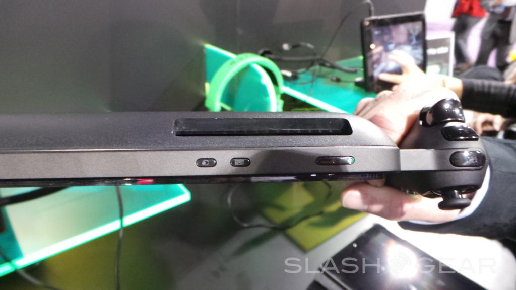 Playing games was awesome though, as you'd expect. WarHammer was excellent and the controls worked quite well. Being able to wonder around the floor and play was quite entertaining. It might not be the most powerful gaming PC around, but then you can't play most in your living room or the backseat of a car now can you? You'll be greeted with USB 3.0 up top, as well as an array of power buttons, volume up/down, and more. Then each handle rocked start, select, and other usual game controls.