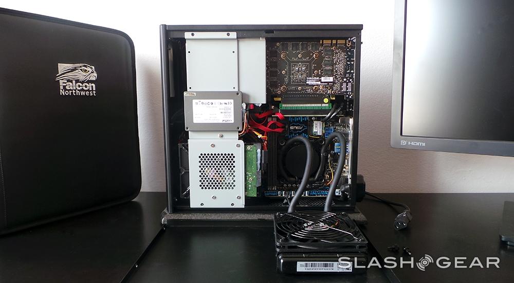In SlashGear's Falcon Northwest Tiki review from earlier this year, we had a look at the interior of this machine as well as its combination with the high-powered graphics card this Red Bull build is rolling out with. As you'll see in this hands-on video, this device is extremely compact and made to be heavy duty – it's "spared no expense" as a man in a movie about an amusement park once said.