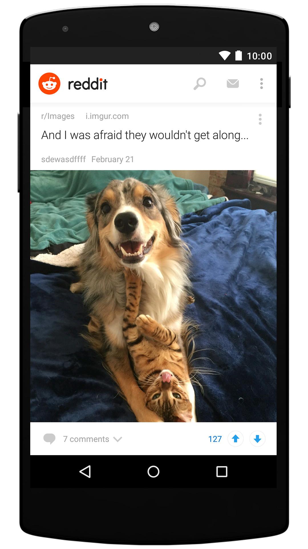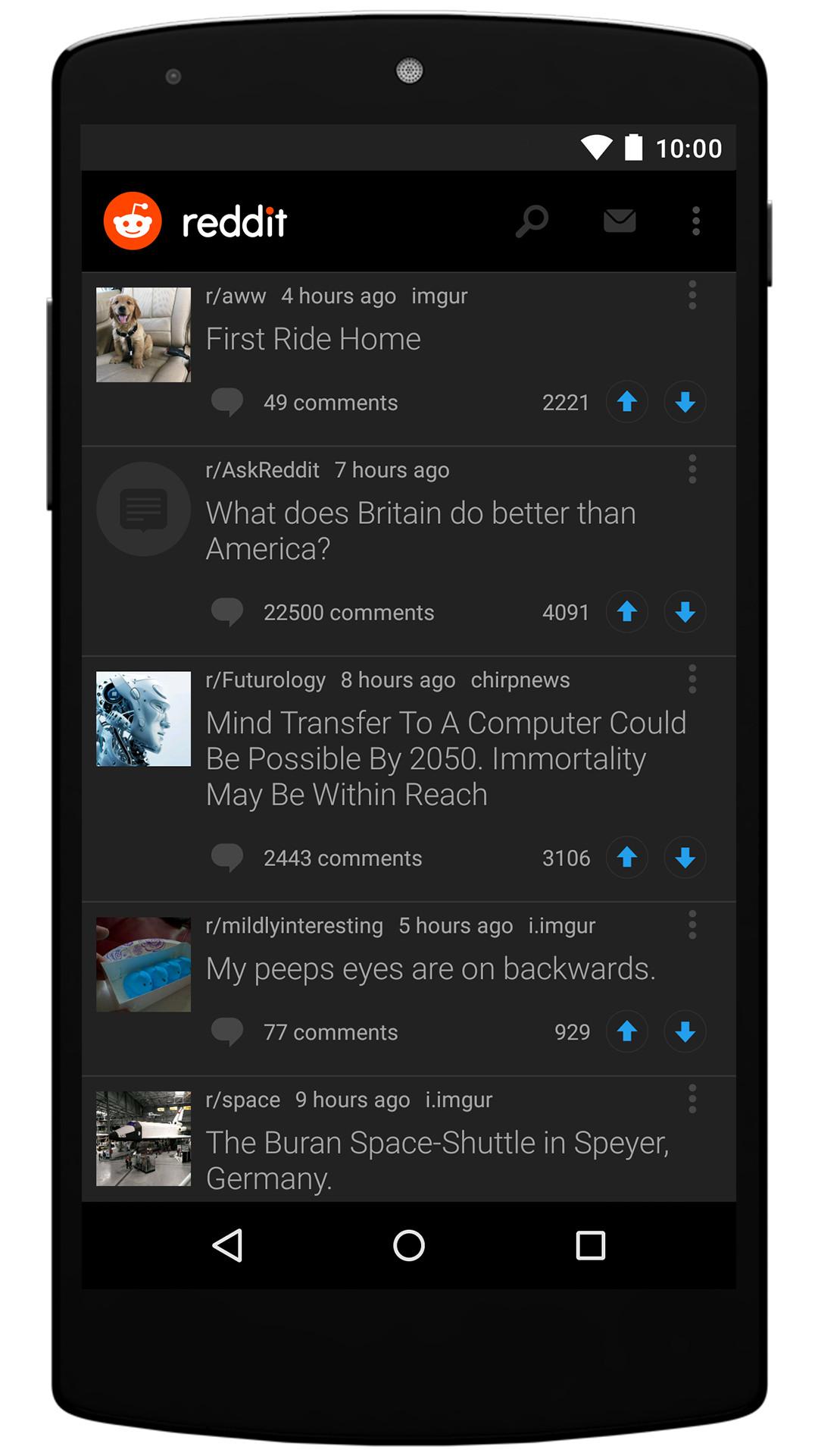 Still, nothing beats a native mobile app, especially in terms of speed, platform integration, and deep features. Those are precisely the promises that Reddit's Android app makes. Unlike the previous "official" iOS app, which is based on the work done by Alien Blue, Reddit boasts that the Android app is all built-in house. It features all your Reddit staples like inline images, simplified navigation, and even a dark theme. In fact, Reddit also takes the same "build from the ground up" path for the new iOS app, also launching today.