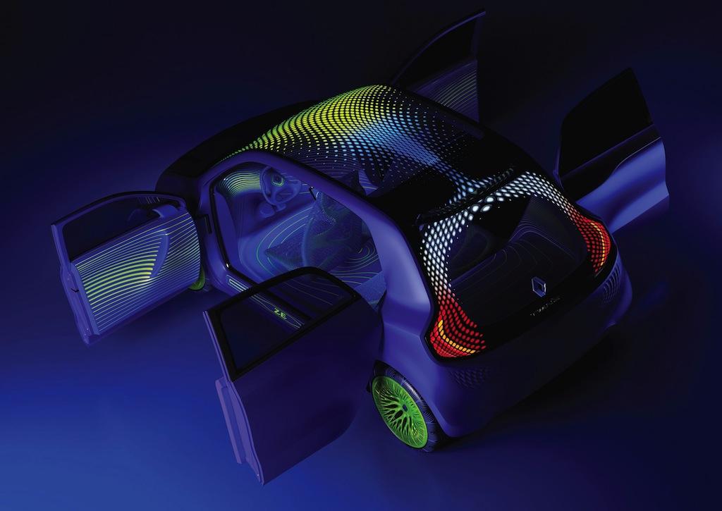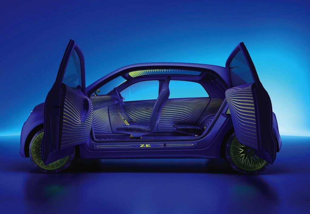 The all-electric rear-wheel drive architecture allowed Renault to push the wheels to the extreme corners of the vehicle for a solid footprint and large platform. Pushing the wheels to the corners the vehicle also allow outstanding cabin space inside the car. One of the most interesting features of the concept car are the doors.
