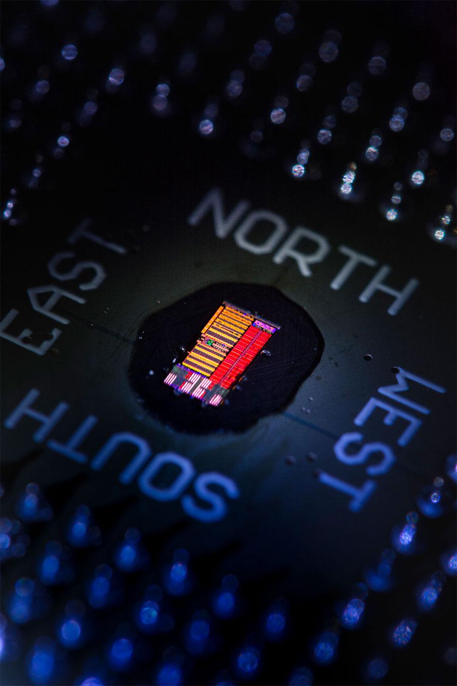 The light-based chip uses infrared light and the light can be densely packed on a chip to enable huge total bandwidths. The chip has a bandwidth density of 300 gigabits per second per square millimeter, about 10 to 50 times higher than electric only microprocessors. The processor created measures 3mm x 6mm and incorporates both traditional electronic circuitry and 850 optical I/O components to make the first integrated single chip design of its type.
