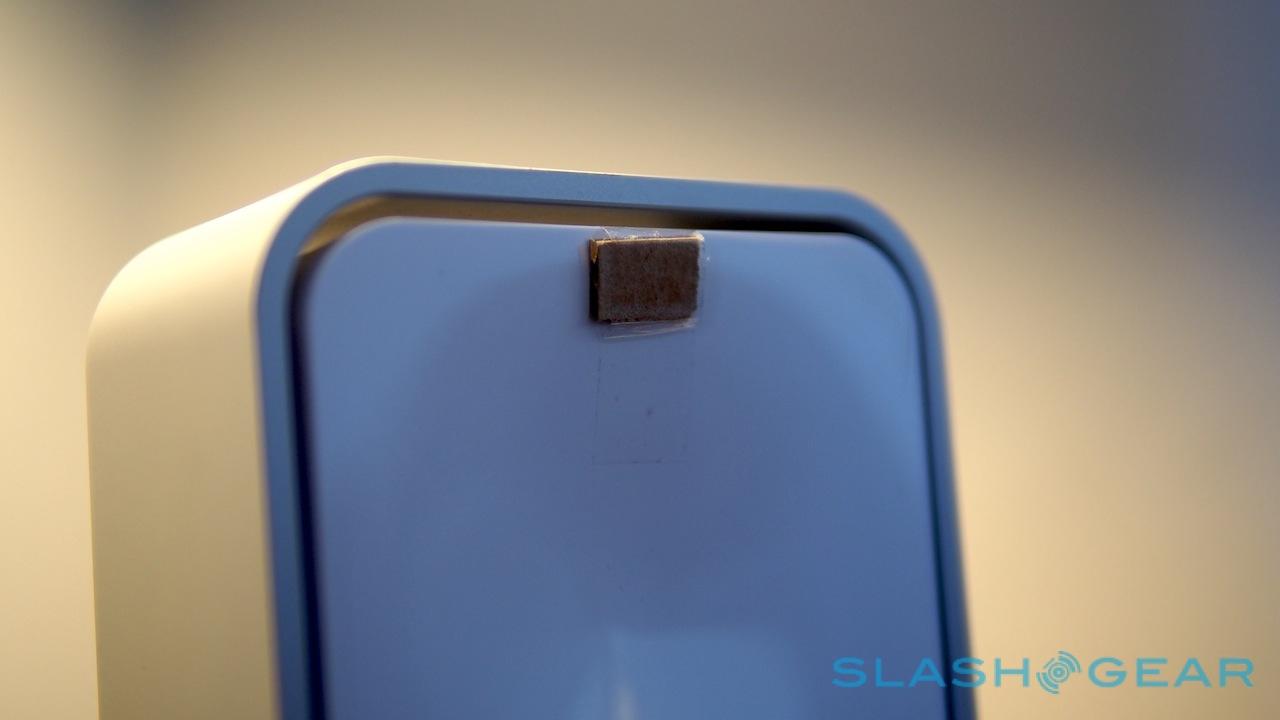 The S+ is certainly distinctive on your nightstand with its brushed aluminum framework, but it's really only the glossy white box suspended in it that matters. That, with its slight concave front, is where ResMed's proprietary respiratory and bio-motion sensor lives, the whole thing clipping into place with a magnet on the side.