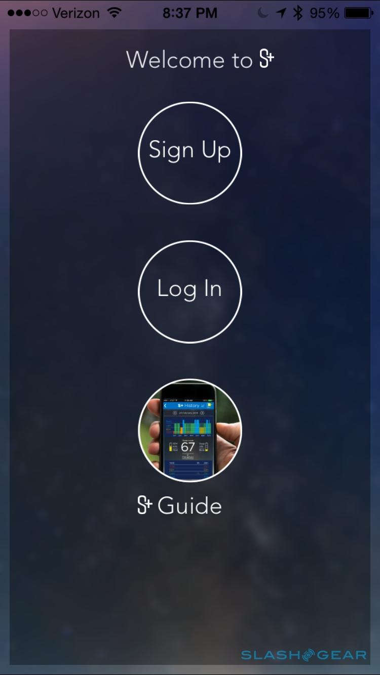 The S+, however, tries to overlay a layer of understanding on top of the data, and for the most part it's pretty useful. When you wake up, after a couple of seconds synchronization, you get an overall sleep score out of 100, as well as a log of how much time you spent in light sleep, how much in deep sleep, and how much in REM sleep. There's also a count of the number of disruptions through the night.