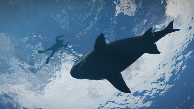 The shots are purposefully nondescript, but they do show off a variety of things that will apparently be in the game. These include swimming with sharks, rottwielers riding shotgun in really nice-looking cars, and mini submarines. There's also a shot featuring a commercial airplane flying alongside a fighter jet with a blimp doing its own thing in the background, so maybe we'll get the chance to fly these aircraft in the game? One can only hope.