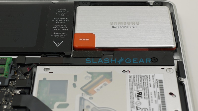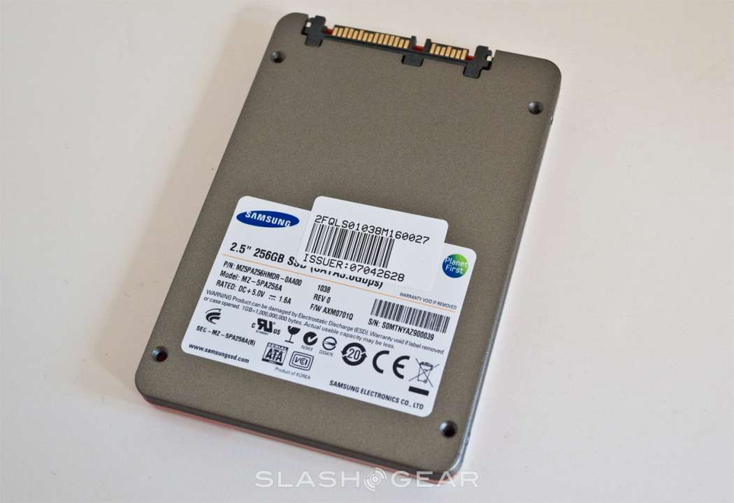The drive itself is a 2.5-inch model with a SATA 3GB/s interface. This 256GB SKU is the largest – Samsung also offers 64GB and 128GB versions, the capacity neatly stencilled onto the corner of the drive – and uses homegrown Samsung controllers and NAND flash. There are also two 128MB cache chips, for a total of 256MB.