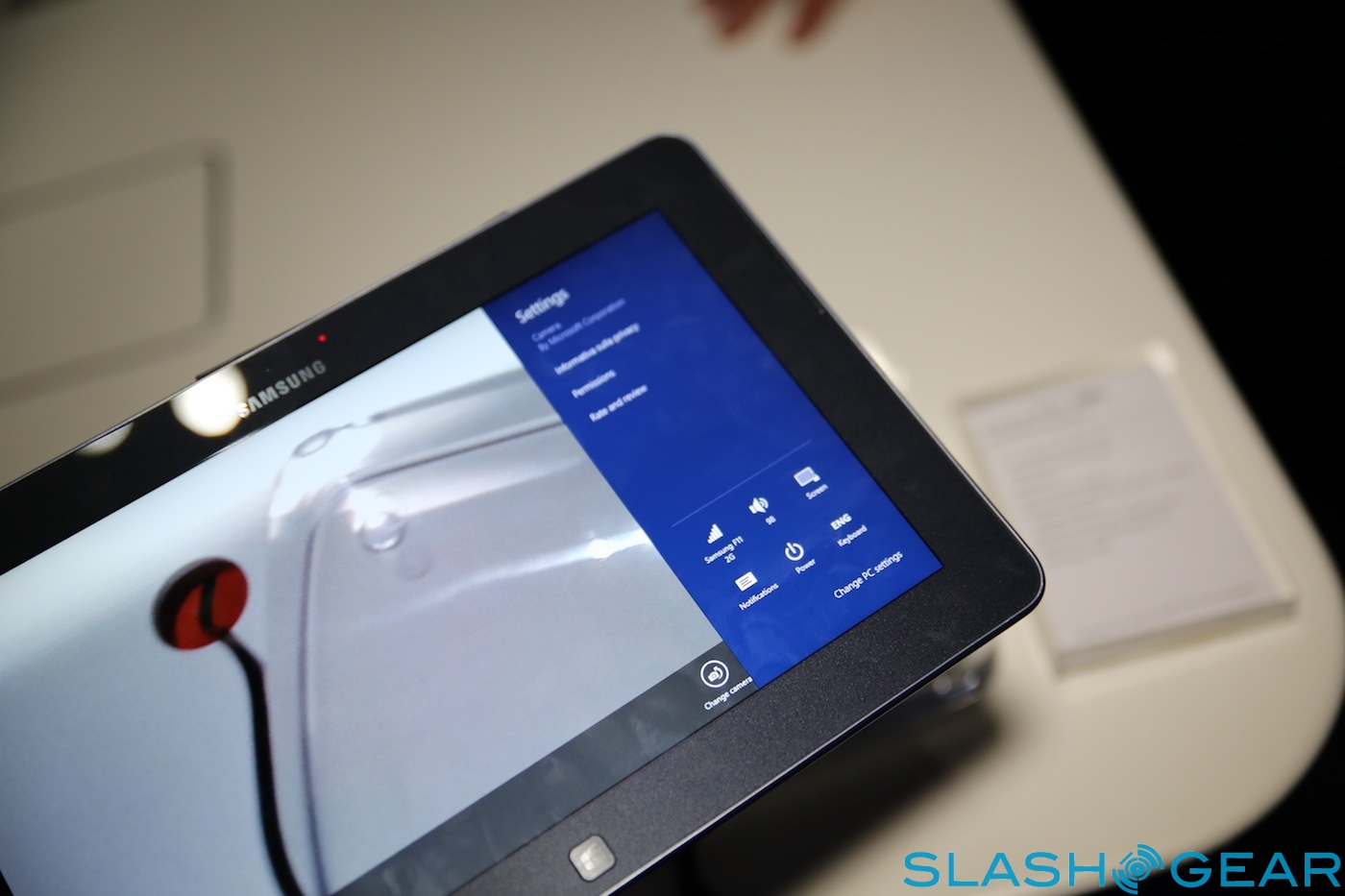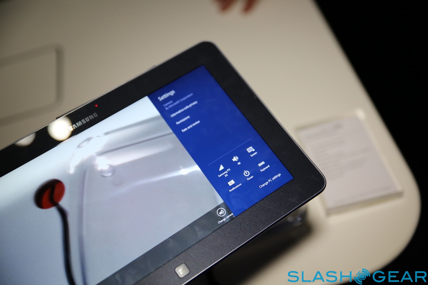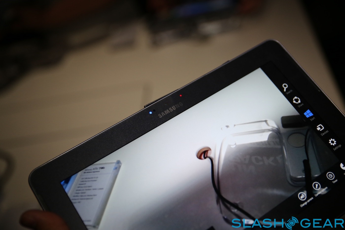 Inside there's a Qualcomm Snapdragon S4 processor speeding at 1.5GHz, paired with 2GB of RAM; no sign of a Windows RT slate running Samsung's own Exynos chips yet. As with the ATIV Smart PC and Smart PC Pro there's both rear and front-facing cameras, though the quality on the latter was very poor.