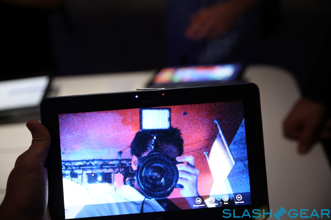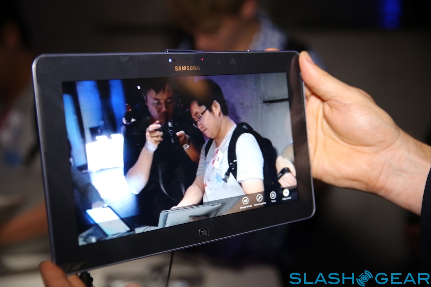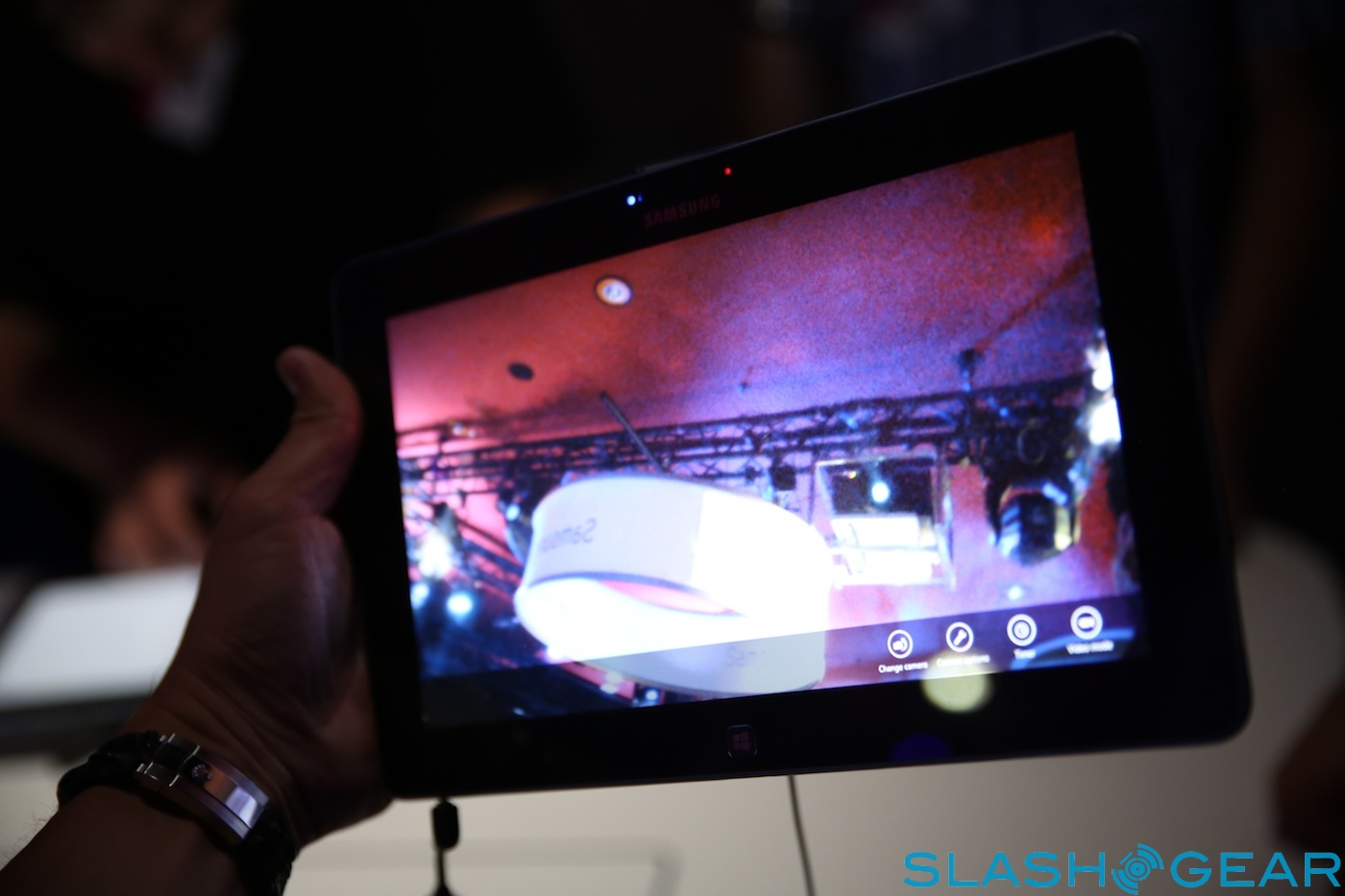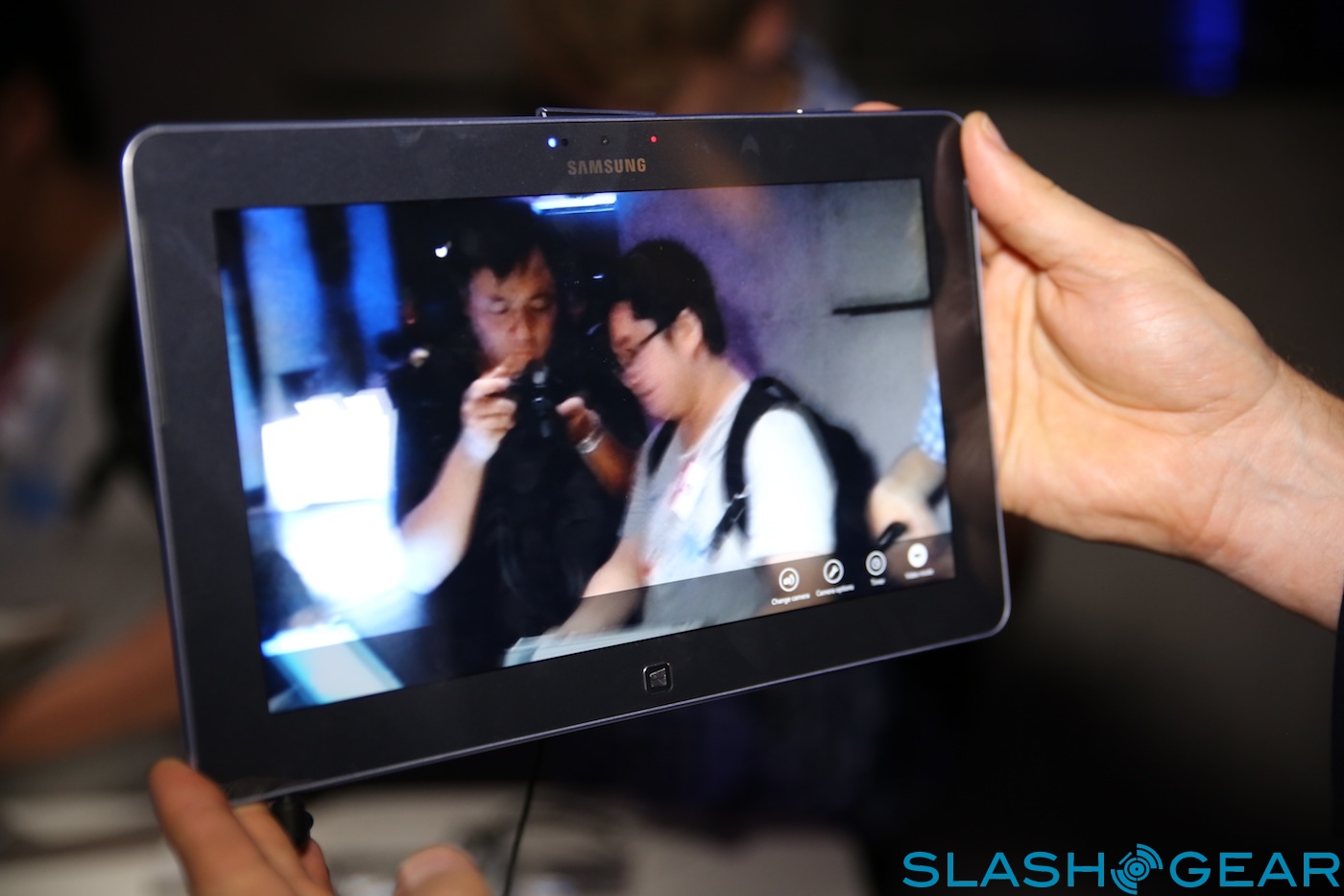 Inside there's a Qualcomm Snapdragon S4 processor speeding at 1.5GHz, paired with 2GB of RAM; no sign of a Windows RT slate running Samsung's own Exynos chips yet. As with the ATIV Smart PC and Smart PC Pro there's both rear and front-facing cameras, though the quality on the latter was very poor.