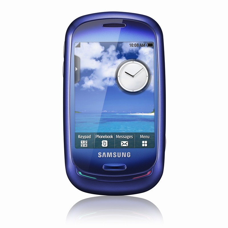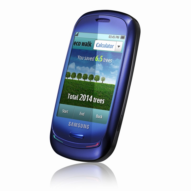 As well as their more mainstream devices, Samsung also announced the first in their new Blue Earth series, an eco-friendly handset made from recycled PCM plastic, which is extracted from water bottles. On the back there's a solar panel, which Samsung are saying generate enough electronic power to "call anytime anywhere".