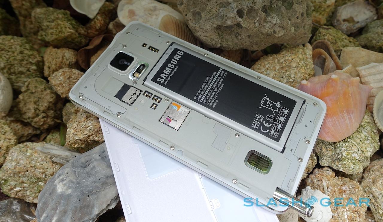 Meanwhile, the removable rear panel has a springiness to your fingertips that's similar to leather (happily Samsung has ditched the faux-stitching around the edge, which made the Note 3 look and feel a little twee), and should hold up to the occasional jab with a set of keys in the same pocket. You'll probably end up scratching the polished metal detailing in the process, though.