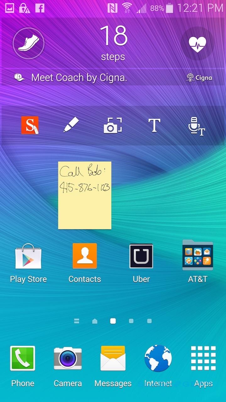 The Note 4 may not be the first phone to offer Quad HD, but it could be the first to take real advantage of it: one of the software features allows you to pin handwritten Post-It style notes to the homescreen, and even though they're roughly the size of a chunky icon, because of the resolution you can still read your own writing.