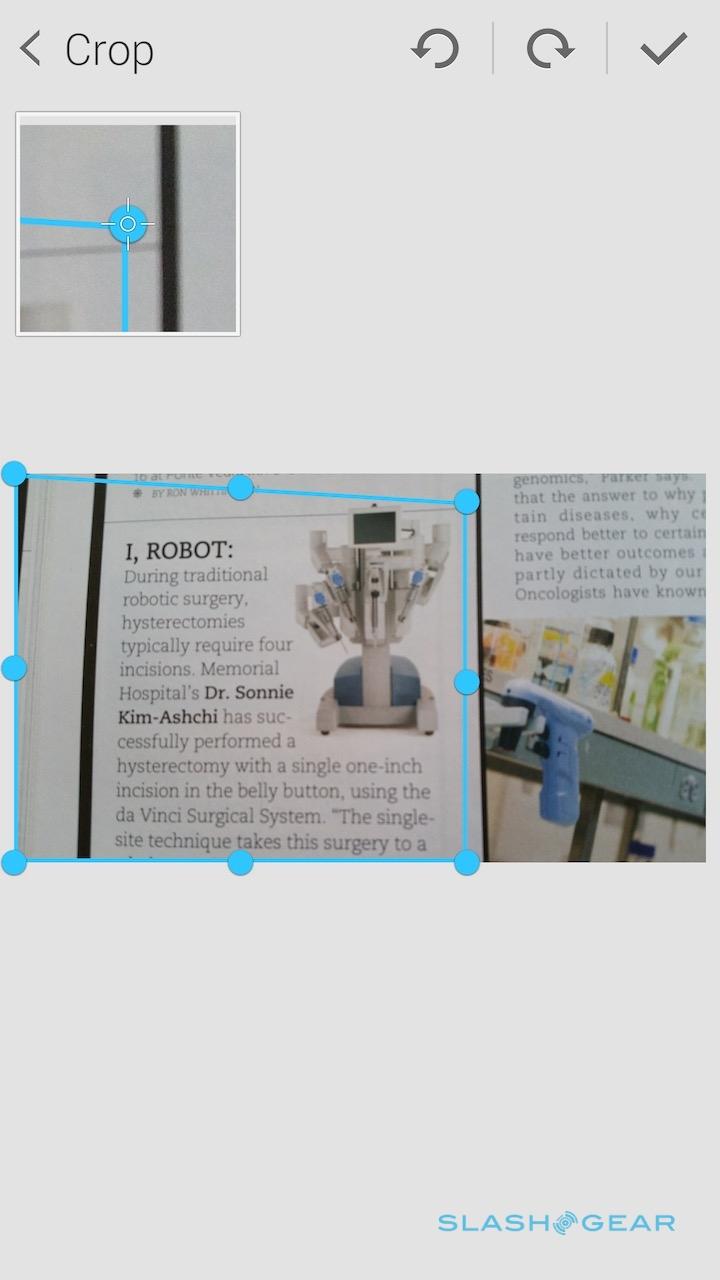 How successful it is depends on the original content, and what your overall ambitions are. In Auto capture mode, the phone tries to spot what content you might be interested in snapping itself, though I found it preferred images to blocks of text; to accurately select the latter, I got more consistent results tapping into Manual mode and then adjusting the capture frame myself. Alternatively, you can import a photo already taken from the gallery.