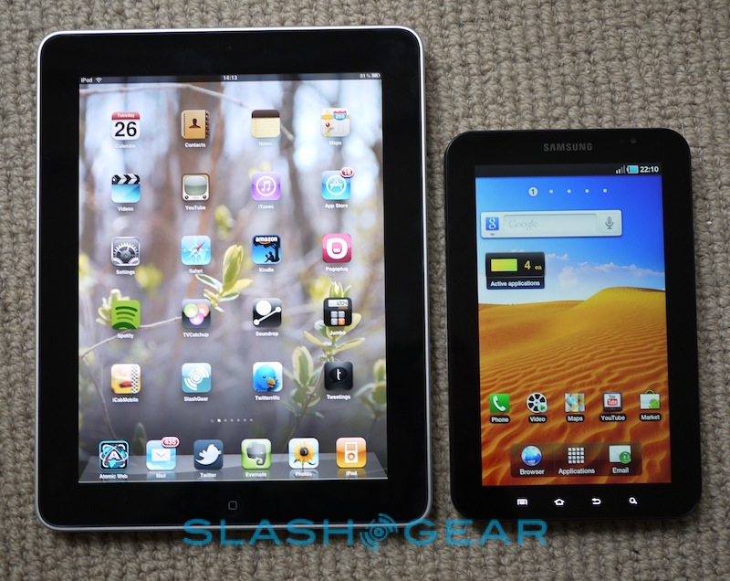 Steve Jobs notoriously dismissed 7-inch displays as "dead on arrival", but we're not so sure. The 9.7-inch iPad runs at 1024 x 768 resolution, compared to the 1024 x 600 of the Galaxy Tab, and we're finding it to be accurate and responsive without needing to "sand down [our] fingers to around one-quarter of their present size." That's all in a package half the size of the iPad, which will fit in your jeans pocket for that matter.