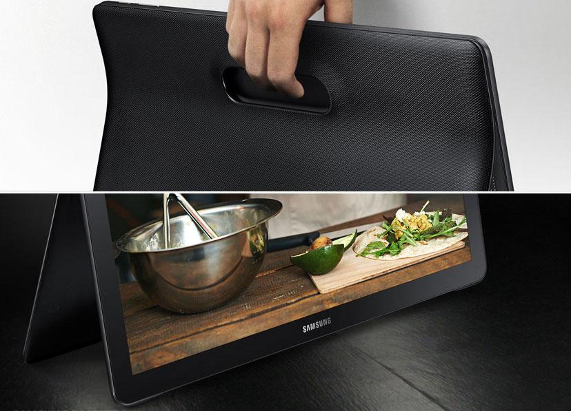 What Samsung calls the "largest Android mobile device on the market" has been revealed in the Galaxy View. This device splits the difference between the smartphone (or tablet) and the full-sized television monitor, coming with a whopping 18.4-inch full HD (1920 x 1080) display with touchscreen capabilities. This device will come in either Wi-fi-only or 4G LTE iterations, running with a nanoSIM card slot right out of the box. This device comes with a built-in handle – naturally – to allow you to carry it around without worrying about a drop.