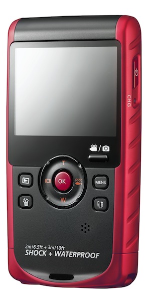 Handy for a sauna, though most of the time you're probably not allowed to film in there anyway. Other specs include still shooting with autofocus and an F2.2 lens, digital image stabilization and microSD/SDHC for storage. The 1,300mAh battery is apparently good for up to 2hrs of continuous use, and it'll withstand 3m submersion in water or 2m drops.