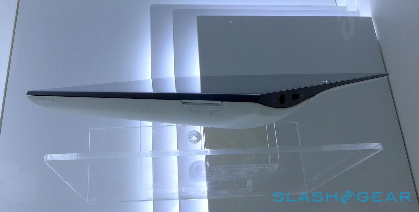 Samsung's Slider concept took a slightly different angle to the Sliding PC Series 7 the company showed off back at CES in January, with a form-factor more akin to Sony's VAIO Duo 11. The fixed viewing angle is a compromise, but the mechanism may well be more sturdy than a single swiveling hinge as on the first prototype.