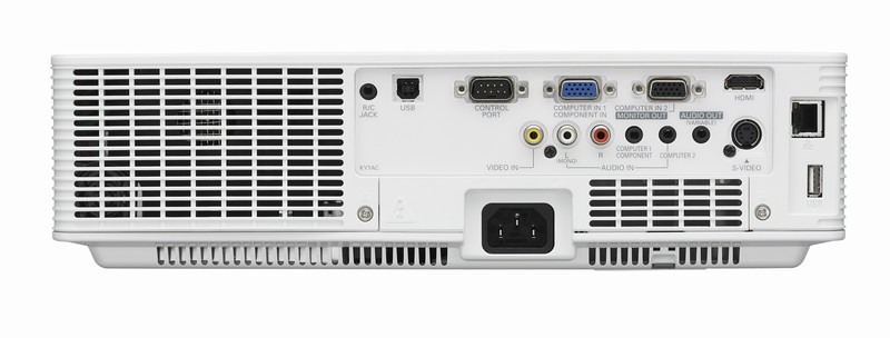 Brightness is 3,800 lumens from the 275-watt lamp and there's a 1.8x optical zoom for straightforward setup. Aside from WiFi, connectivity includes HDMI, analog RGB, RCA, S-Video and two D-Sub inputs. There's also audio connectivity for the integrated 1W mono speaker, an ethernet port (10/100) and serial port for system integration.