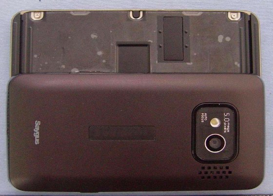 Other specs include 512MB of ROM and 256MB of RAM, a microSD slot, WiFi, Bluetooth and GPS; there's also an accelerometer and digital compass. An FM radio is a welcome addition, but we wish Saygus had found room for a proper 3.5mm headphone jack; still, the mini USB port can act as USB Host for peripherals, and there's a front-facing camera for video calls.