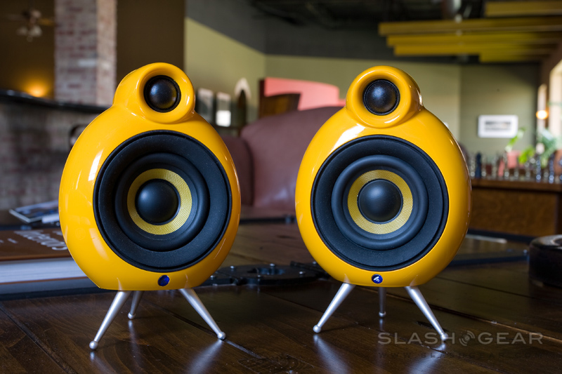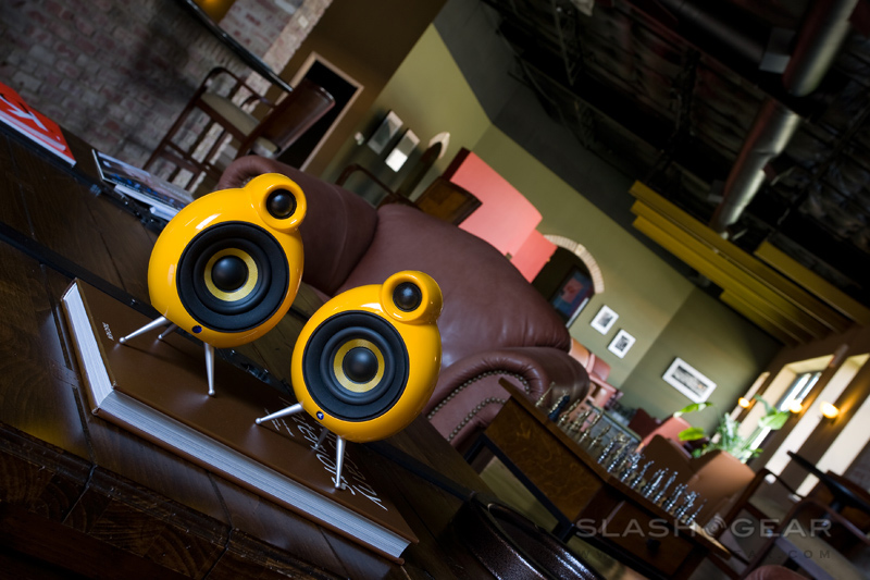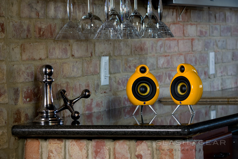 These curvaceous and futuristic Micropod speakers from Scandyna look oddly familiar; in some way, the Kevlar drives and tube enclosure tweeter reminded me of the legendary B&W Nautilus 800 series speakers. I kid you not, the original pod speakers were in fact developed by the team behind the World-renowned Nautilus, but it was later licensed to a Danish speaker maker, Scandyna.